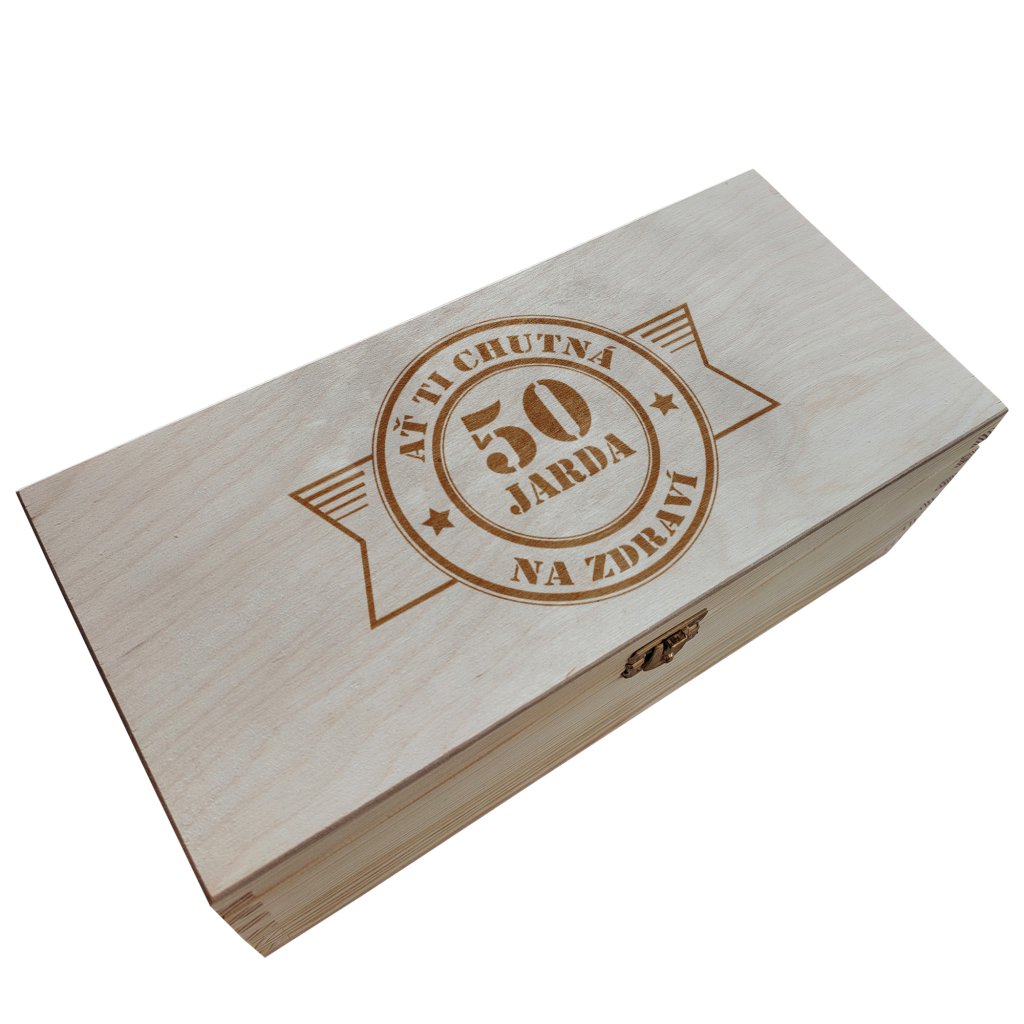 Stylový a originální způsob, jak předat láhev alkoholu k narozeninám nebo jiné významné příležitosti. Na víku krabičky je vygravírovaný motiv s textem „Ať ti chutná, na zdraví!“, doplněný o věk oslavence a jeho jméno.