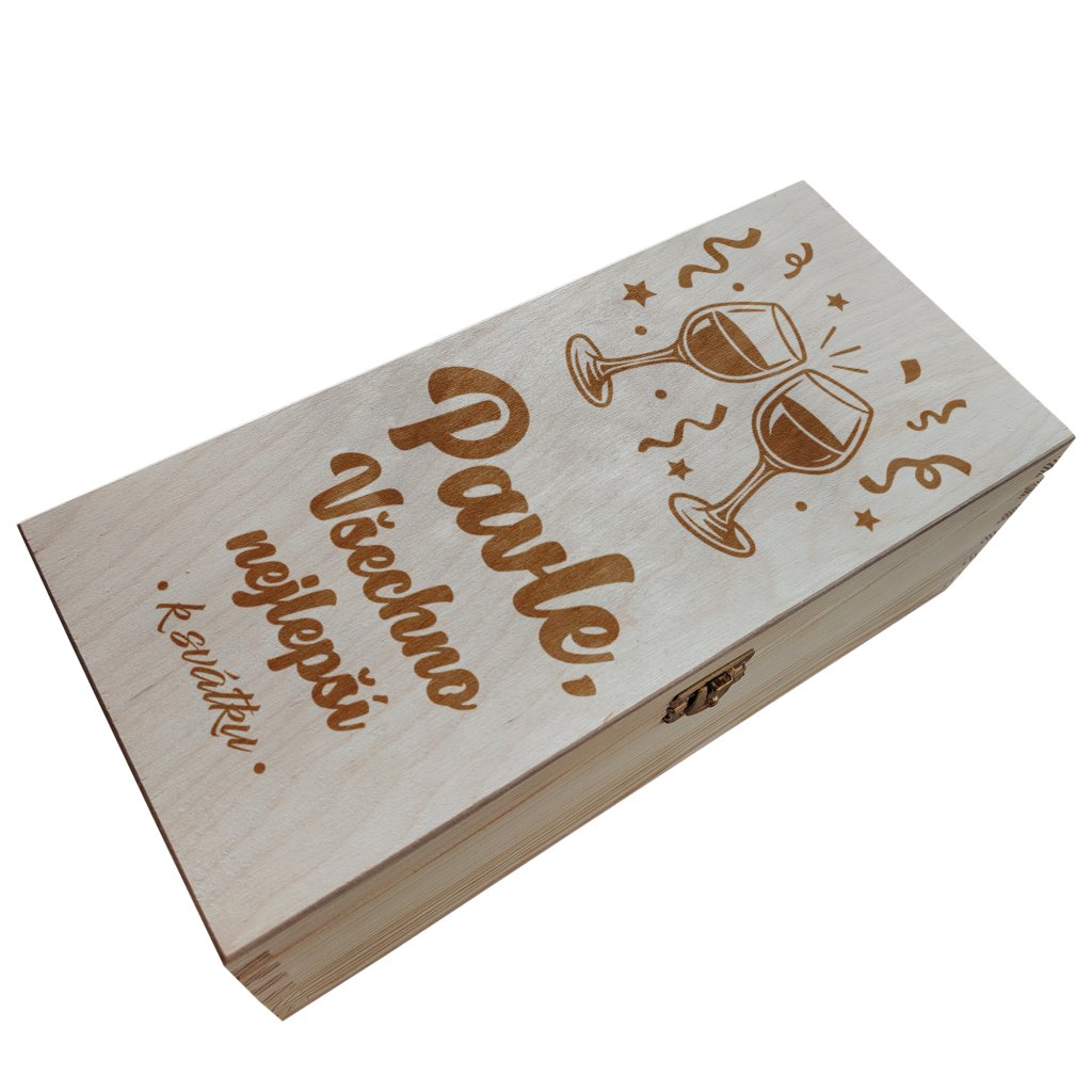 Originální dárek, který potěší každého oslavence! Elegantní dřevěná krabička s gravírovaným motivem na víku je skvělým způsobem, jak věnovat láhev například vína, prosecca, rumu nebo whiskey.