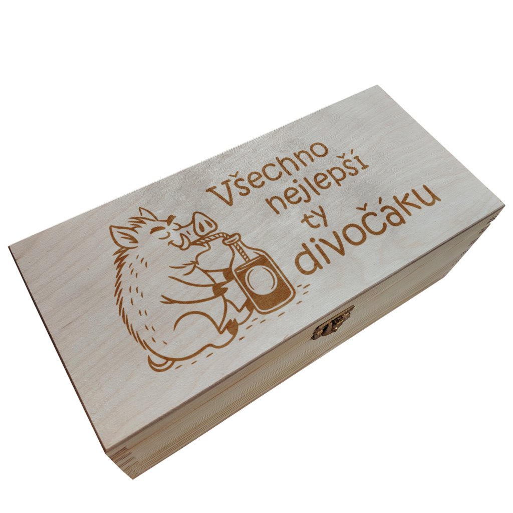 🐗 Dřevěná krabička na láhev – „Všechno nejlepší, ty divočáku“
