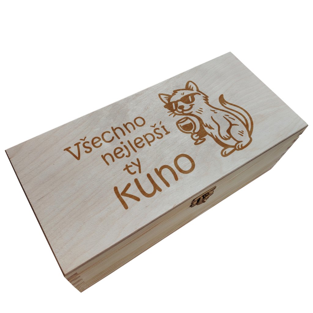 😼 Dřevěná krabička na láhev – „Všechno nejlepší, ty kuno“