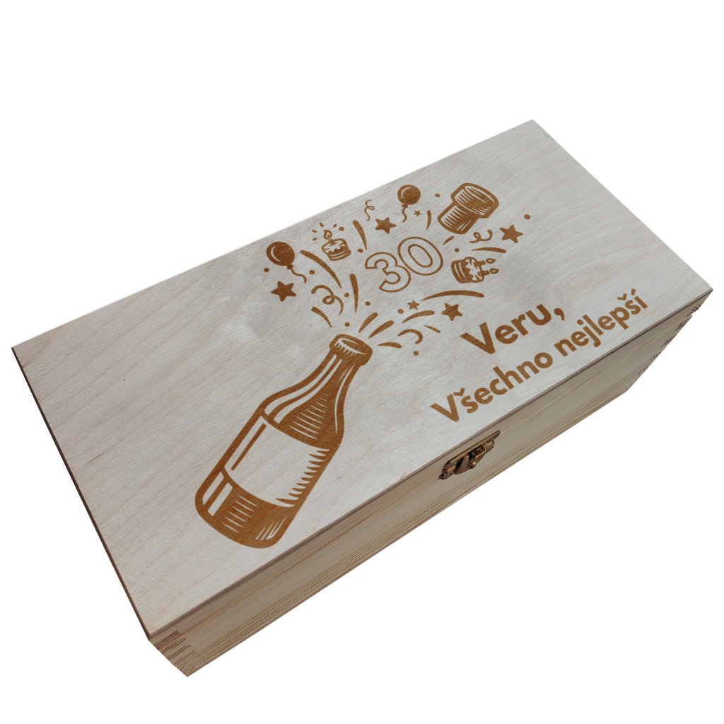👉 Personalizace – do poznámky k objednávce napište jméno oslavence a jeho věk, které budou vygravírované přímo na víku krabičky. (Např. „Veru, všechno nejlepší 30!“)