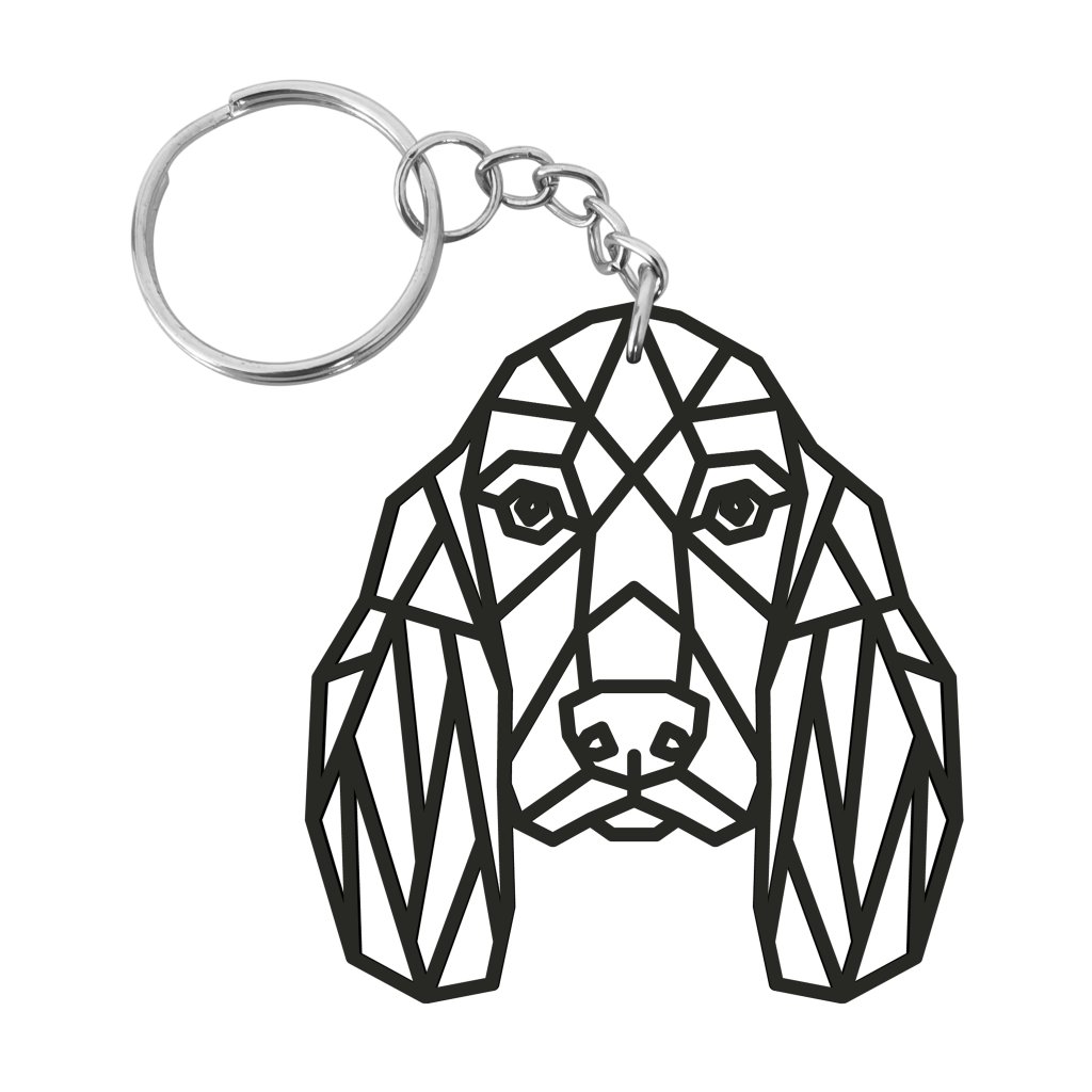Dřevěný přívěsek psa v polygonálním stylu z březového dřeva s kovovým kroužkem a řetízkem.