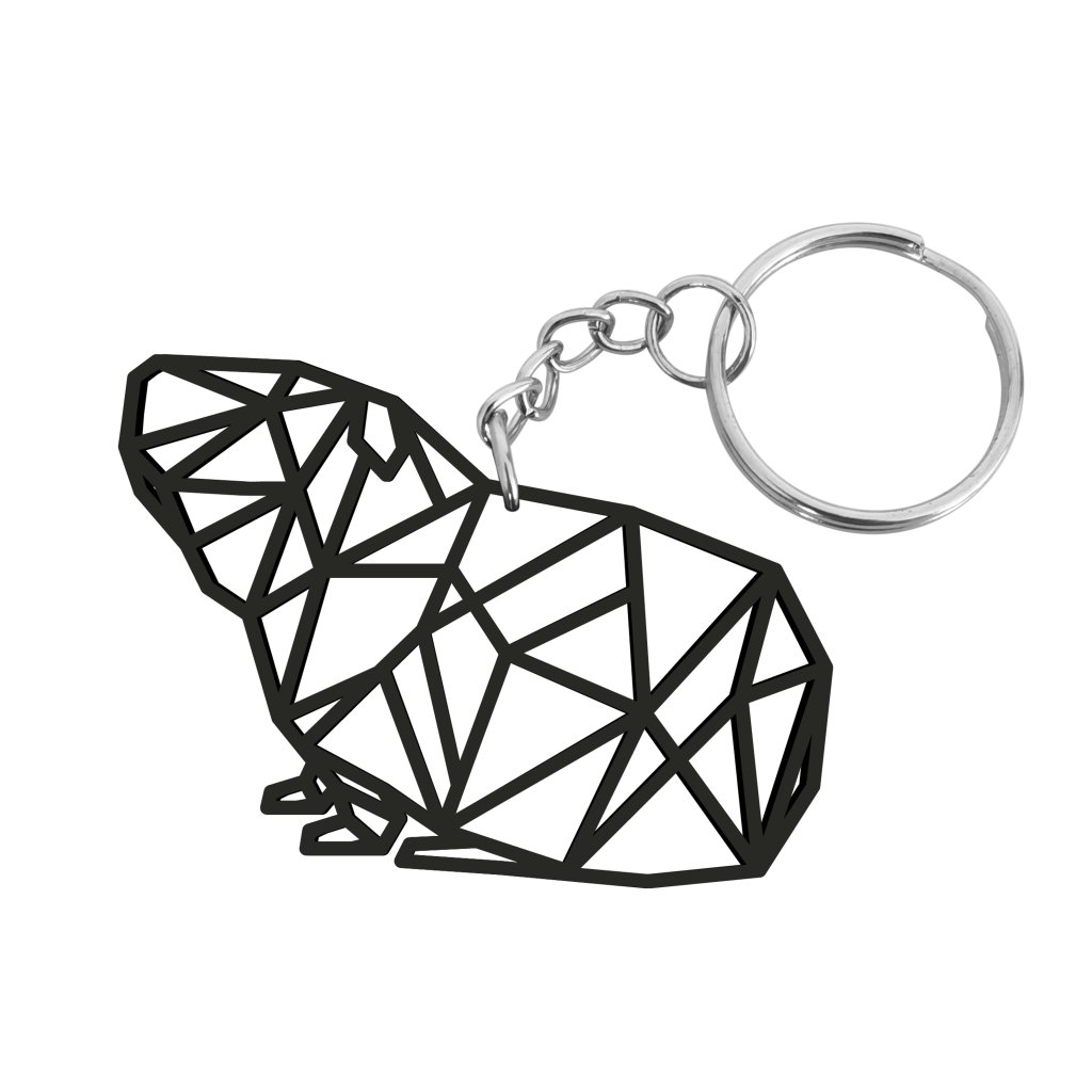 Dřevěný přívěsek morčete v polygonálním stylu z březového dřeva s kovovým kroužkem a řetízkem.