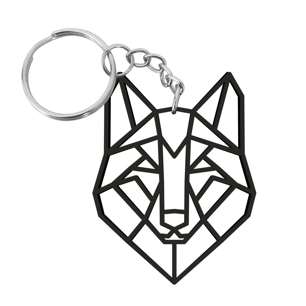 Dřevěný přívěsek vlka v polygonálním stylu z březového dřeva s kovovým kroužkem a řetízkem.