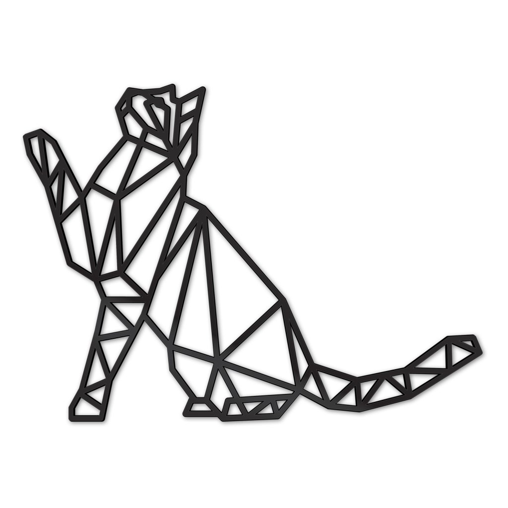 Polygonální tvar kočky je vyřezaný laserem, poté ručně obroušen a nakonec obarven na černo. Uchycení je vyřešeno oboustrannou lepící páskou, která je součástí balení.