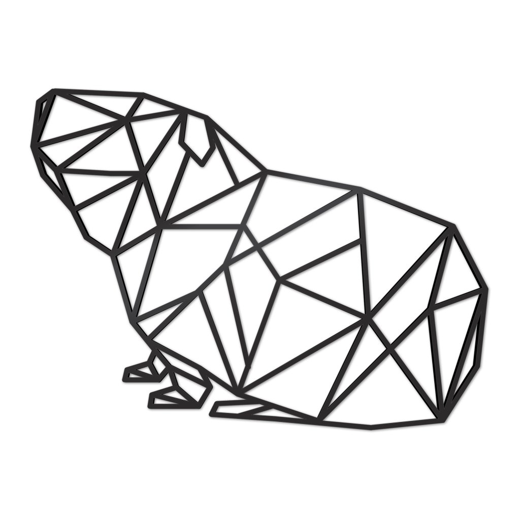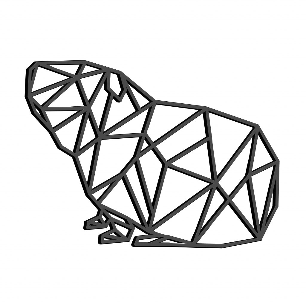 Polygonální tvar morčete je vyřezaný laserem, poté ručně obroušen a nakonec obarven na černo. Uchycení je vyřešeno oboustrannou lepící páskou, která je součástí balení.