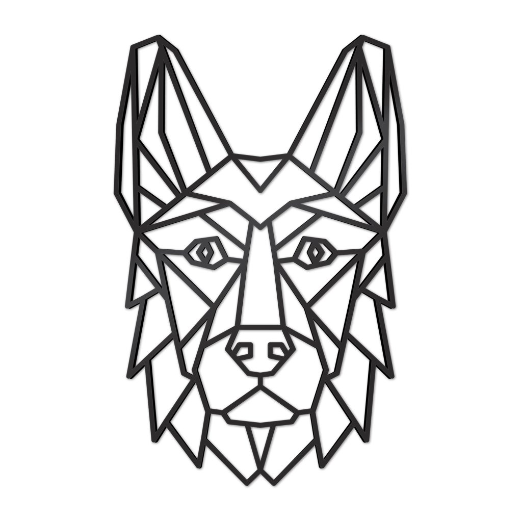 Polygonální tvar psa je vyřezaný laserem, poté ručně obroušen a nakonec obarven na černo. Uchycení je vyřešeno oboustrannou lepící páskou, která je součástí balení.