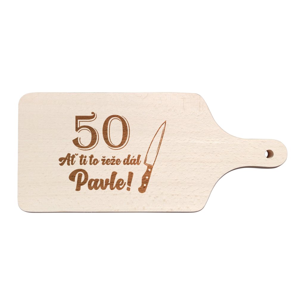 Dřevěné prkénko „Ať ti to řeže dál“ – s věkem a jménem na přání